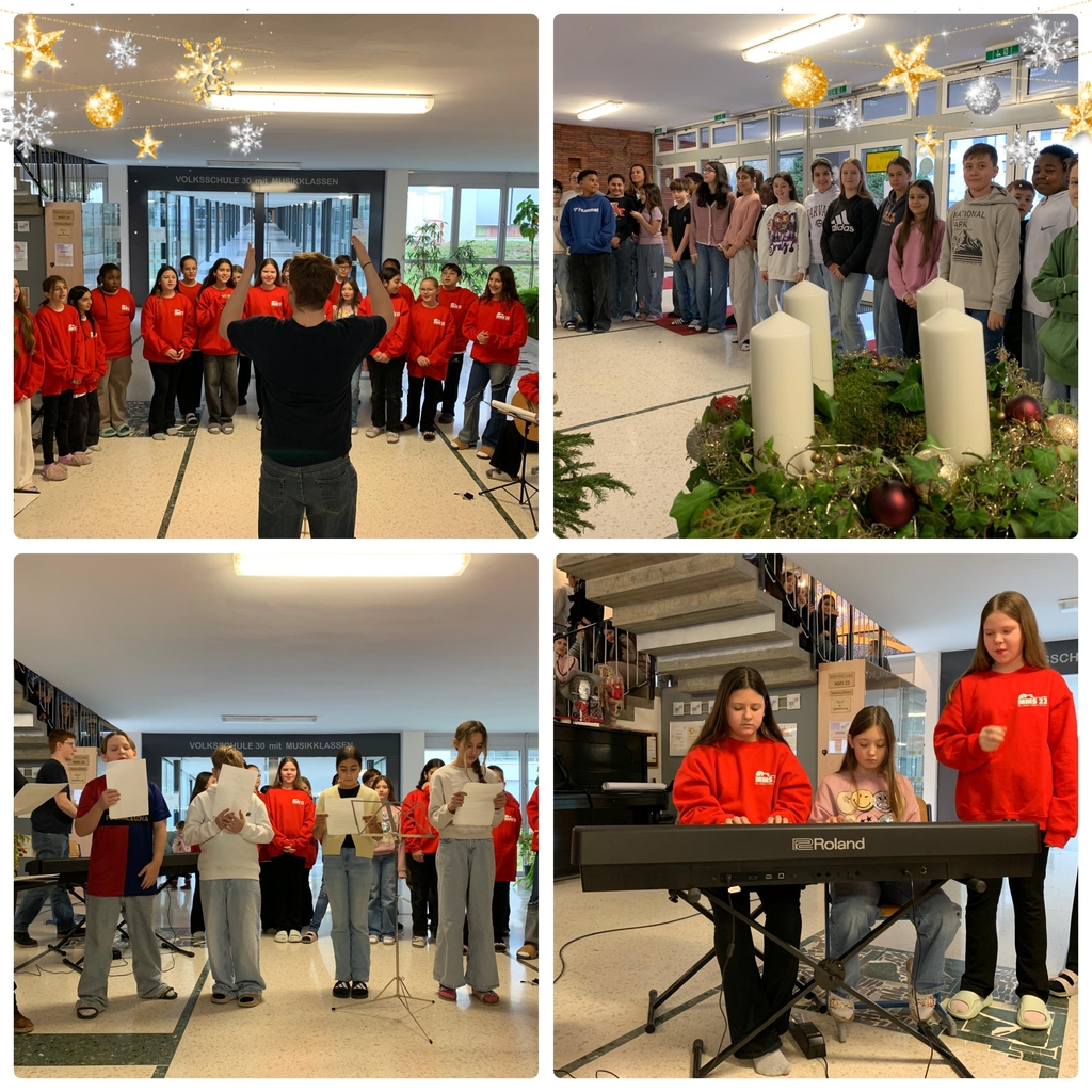 Jede Woche versammelt sich ein Jahrgang in der Aula rund um den Adventkranz, um gemeinsam eine besinnliche Auszeit im vorweihnachtlichen Trubel zu erleben. Schülerinnen und Schüler lesen stimmungsvolle Texte, die zum Nachdenken anregen und auf die Adventzeit einstimmen. Musikalisch gestaltet werden die Feiern mit Instrumental- und Gesangsbeiträgen von den Musikklassen. Den feierlichen Auftakt gestalteten in diesem Jahr die 1. Klassen.