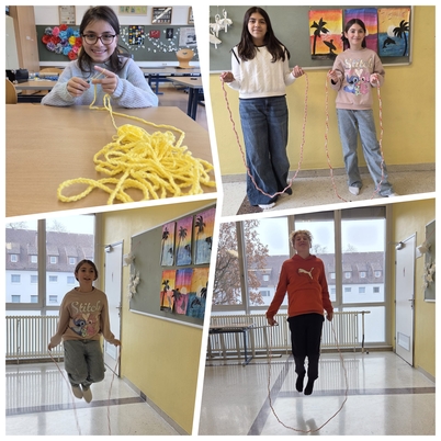 Die Klasse 1b zeigte großen Fleiß und Kreativität: In liebevoller Handarbeit häkelten die Kinder bunte Springschnüre für unsere bewegte Schule. Die neuen Seile bringen mehr Schwung in die Pausen und sorgen für sportliche Abwechslung im Schulalltag.